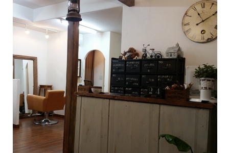アンティーク調でカフェや雑貨屋、パン屋さんなどに間違われるような雰囲気の落ち着いた店内です。お客様の為、自分達の為にも常に居心地の良い空間を心掛けています。開業してまだ新米サロンですが、癒しの場所として愛されるサロンでありたいと思っています。向上心を持ち、人とのつながりを大切に出来る方、笑顔で頑張れる方と一緒に楽しく仕事をしたいと考えています。少しでも気になっていただけたなら、気軽に見学にいらしてください。宜しくお願い致します。